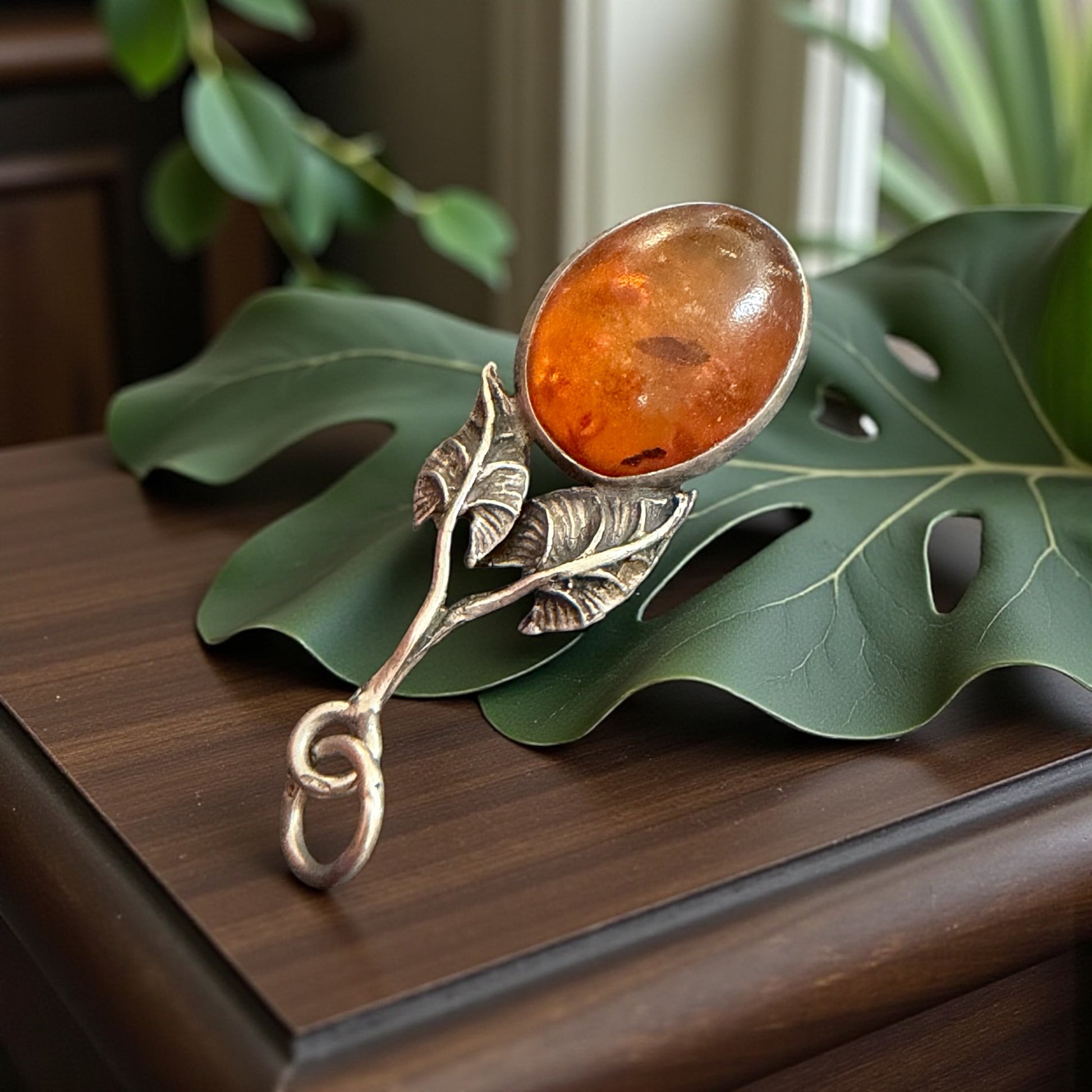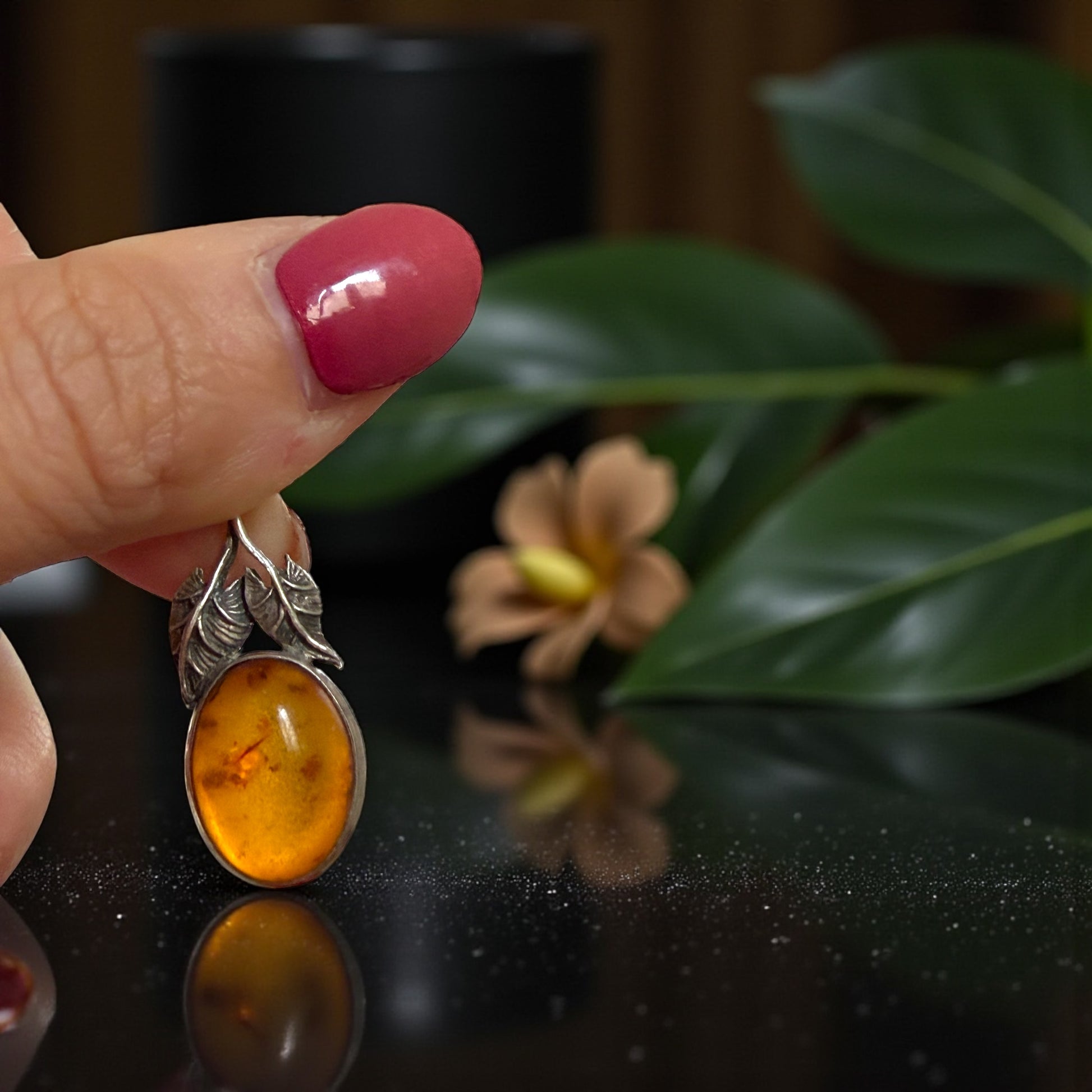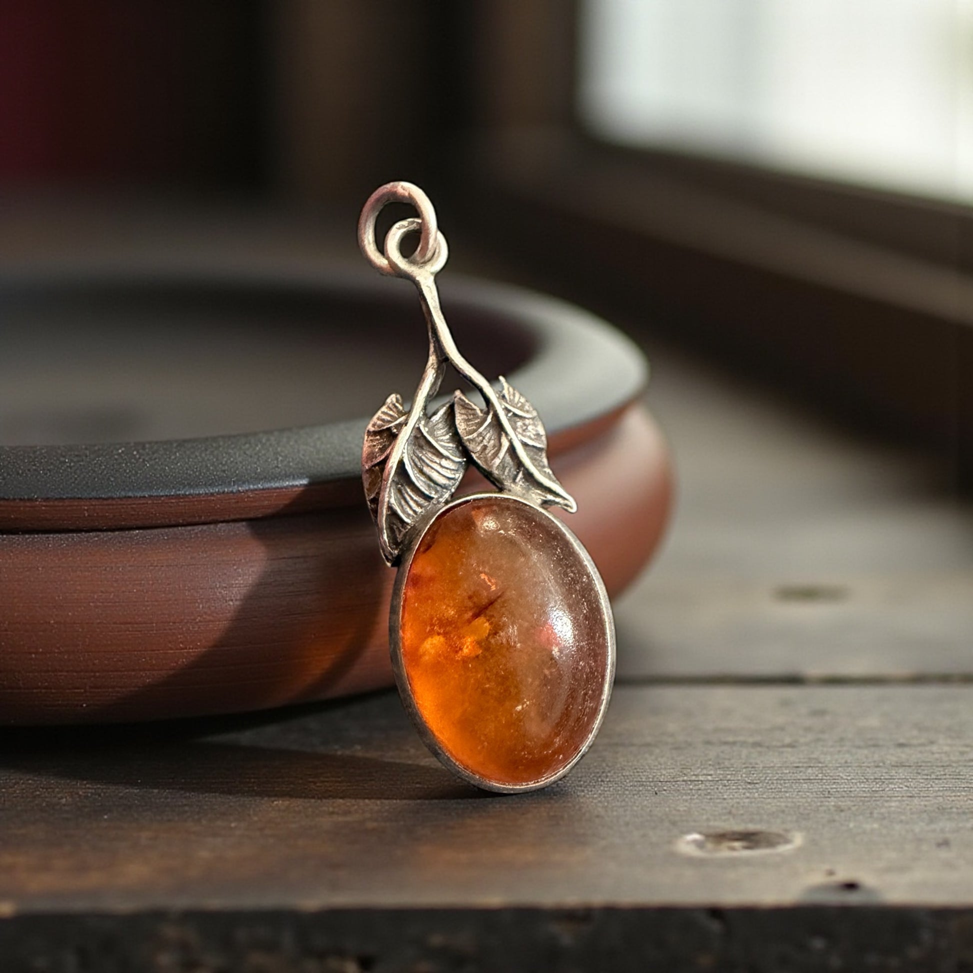 Pendente in Ambra e argento 925 con lavorazione fitomorfa