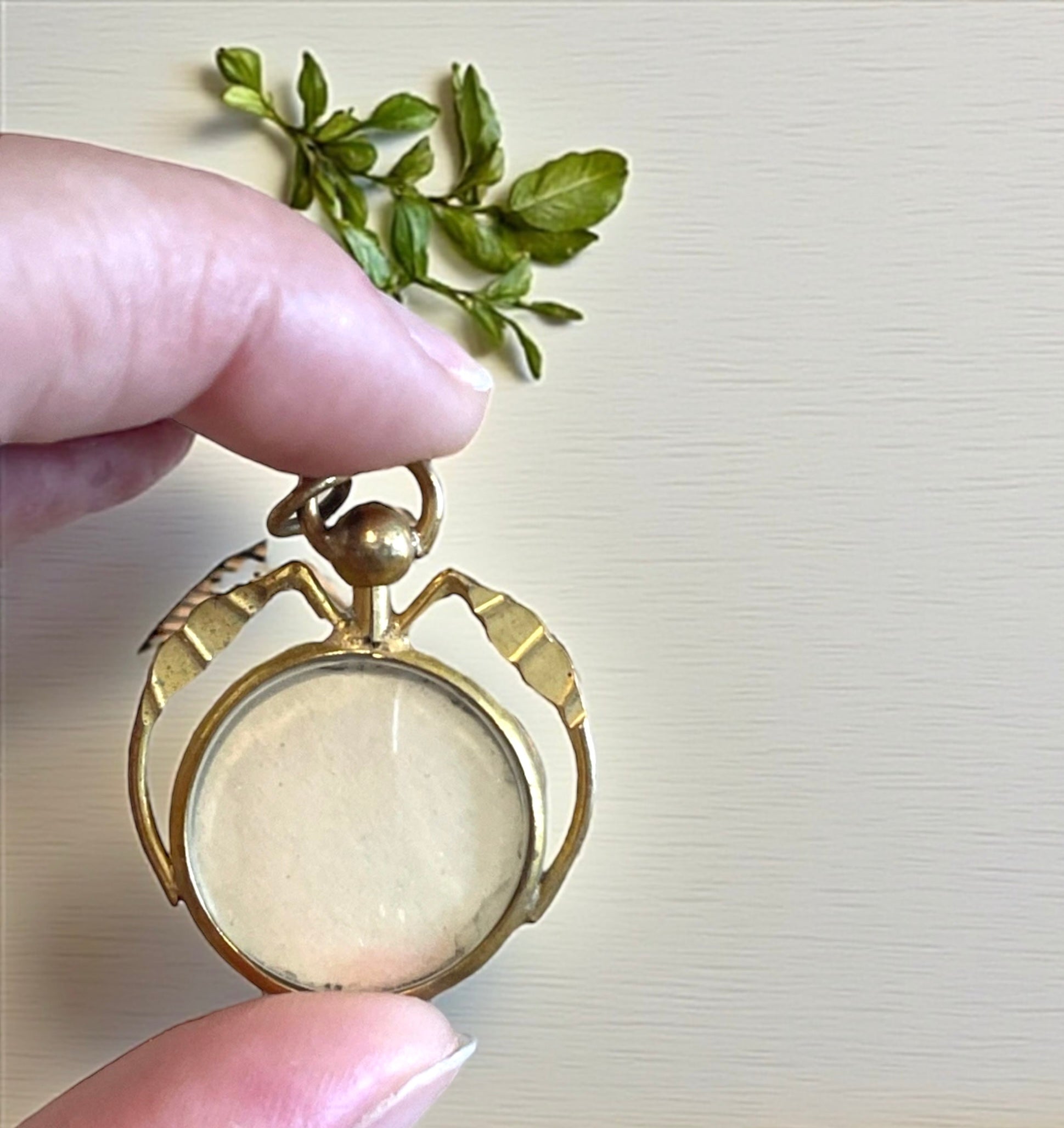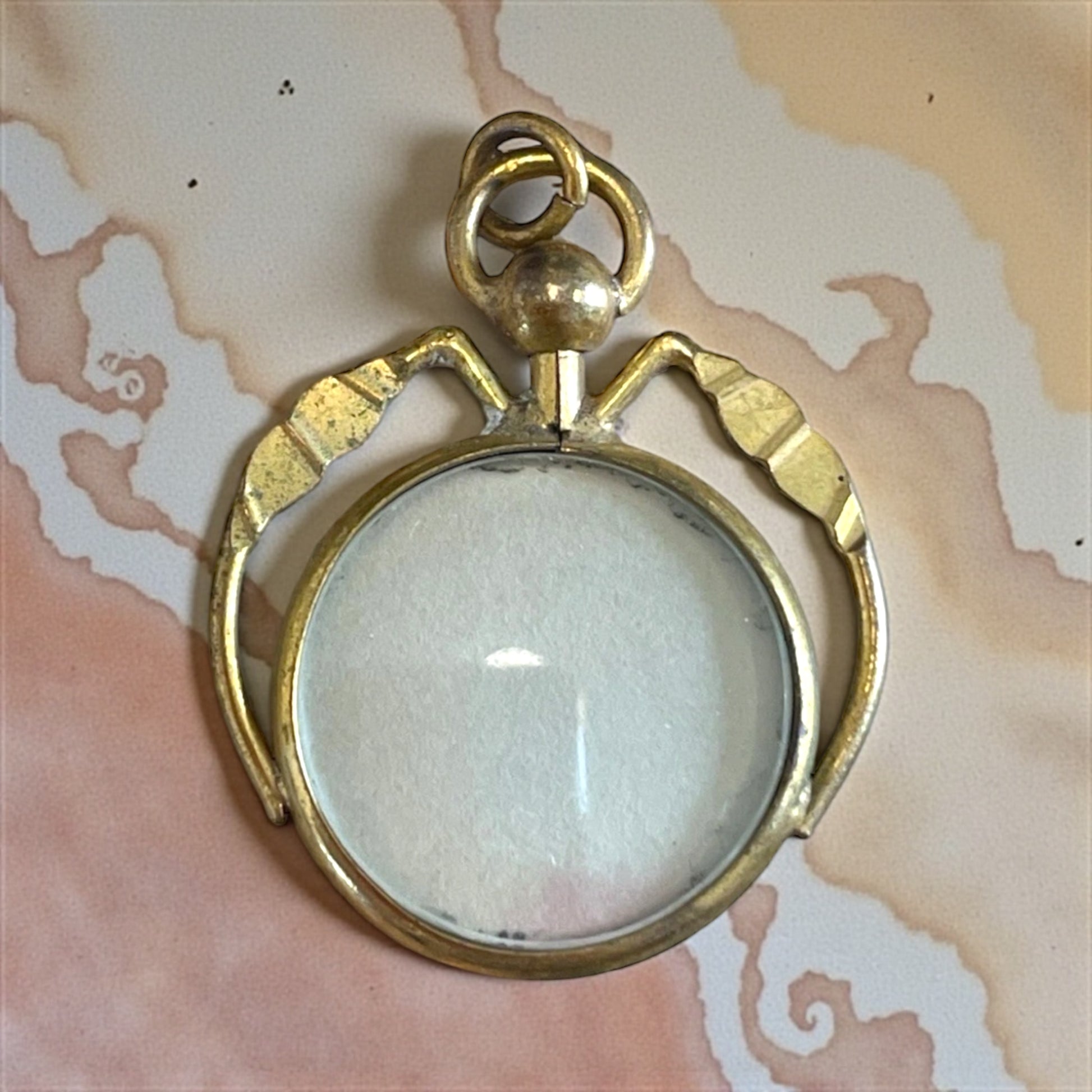 Pendente Liberty, doppio vetro bombato, con foto di dama con la palla anni ‘10