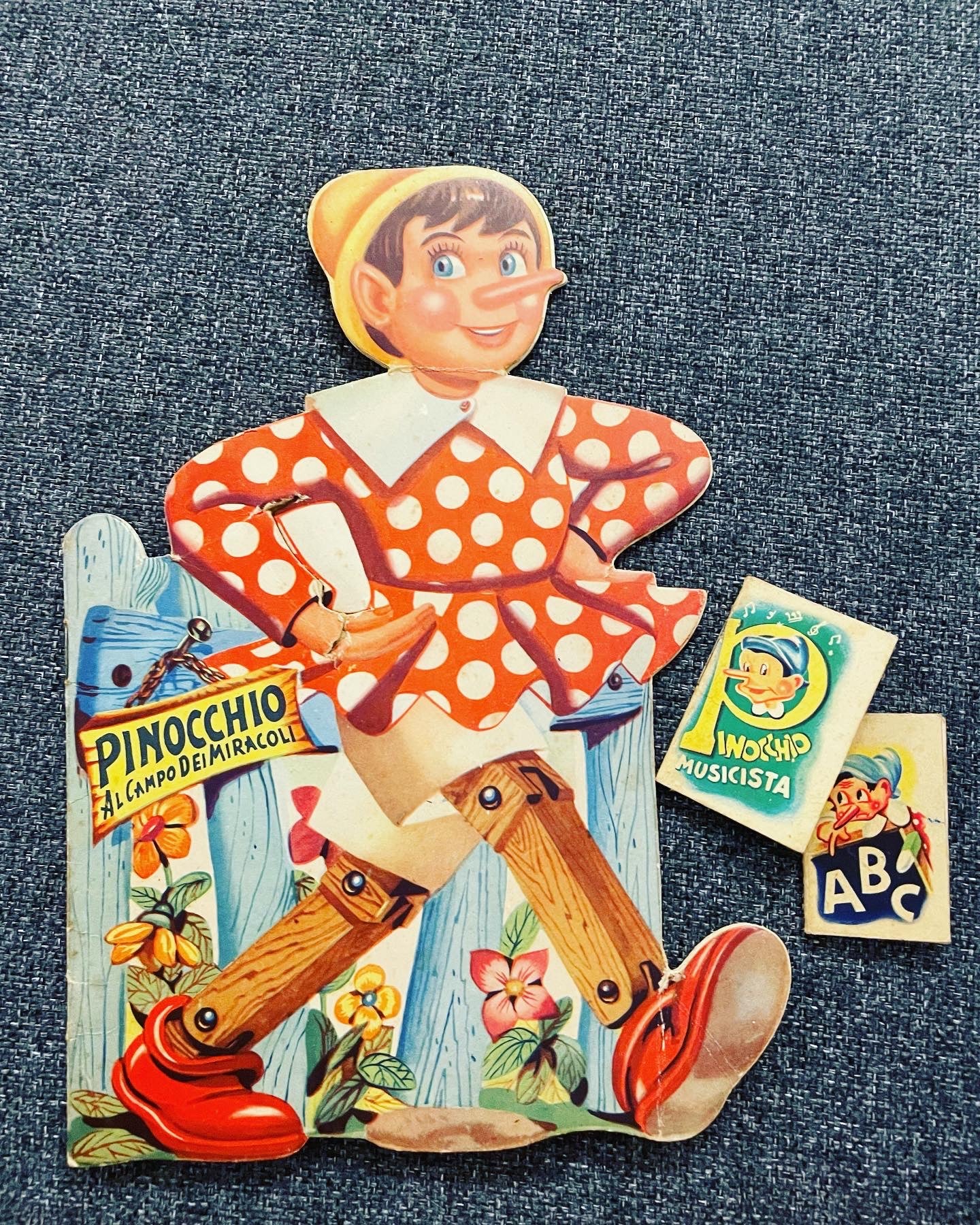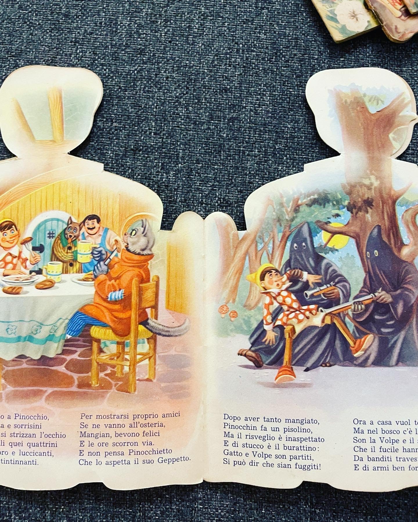 vecchiolibro edizioni Lampo #rara #pinocchio al campo dei miracoli #anni60 completo di due minuscoli libricini con l’alfabeto di Pinocchio ed un’altra sua avventura.