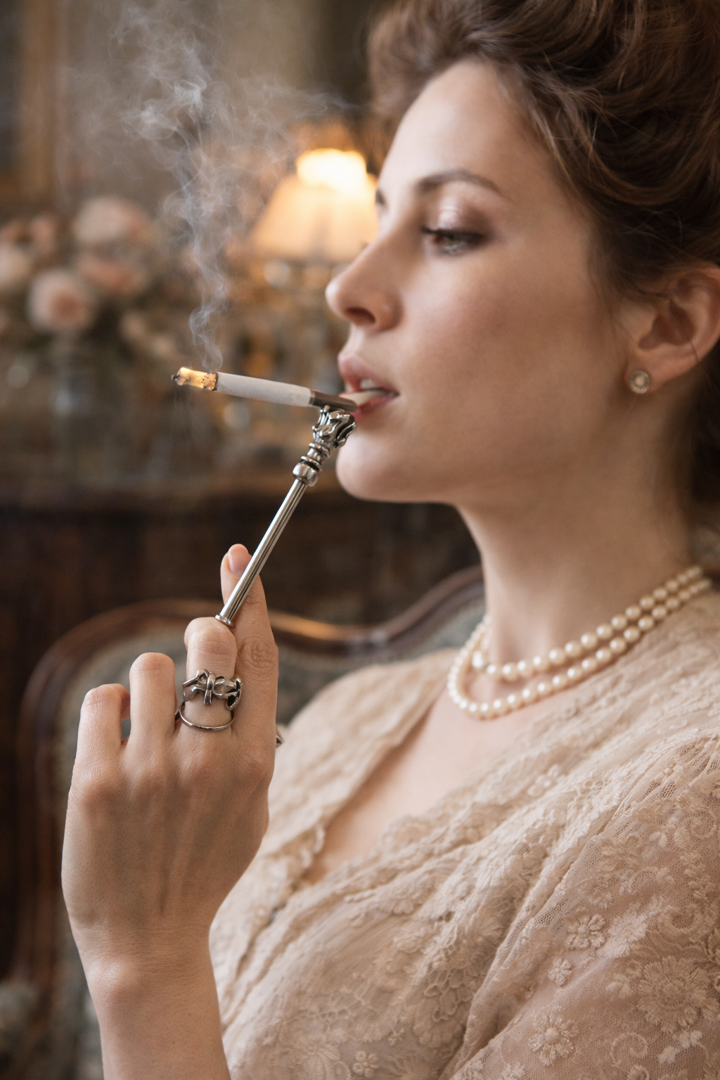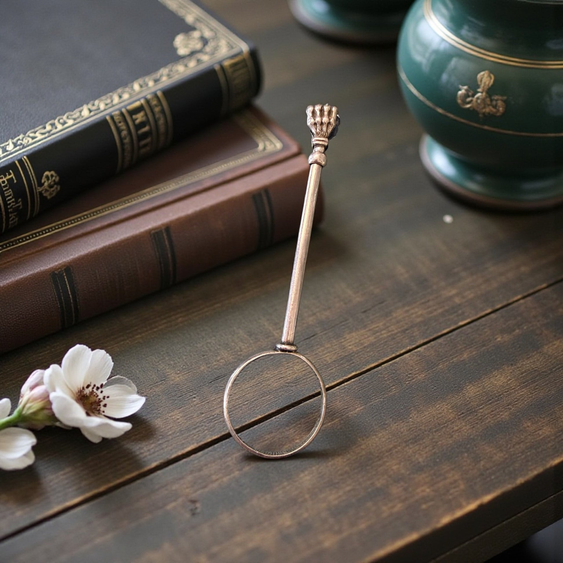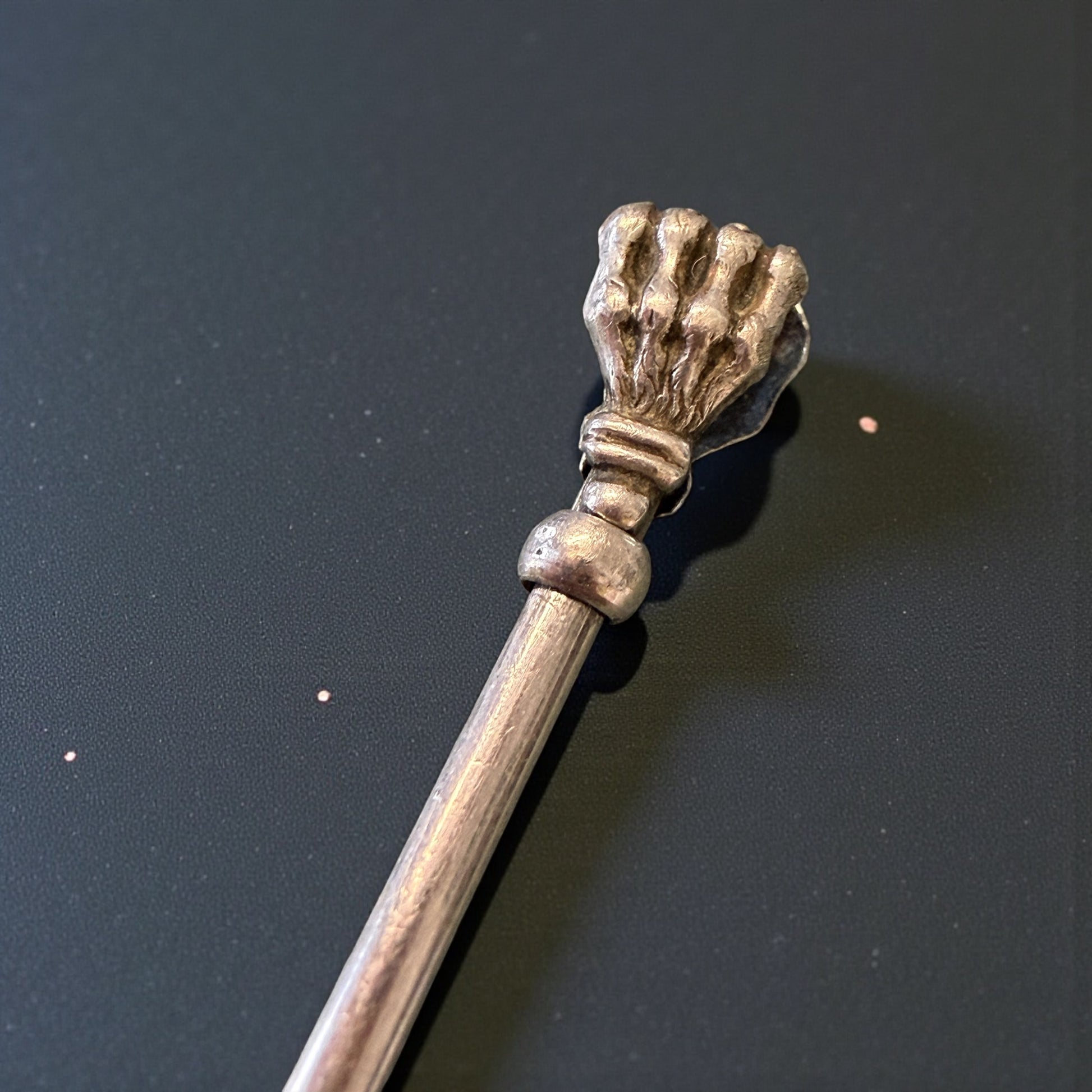 Un gesto piccolo, quasi teatrale, che racconta un’epoca intera. Bastava infilare l’anello al dito, regolare l’asta con un lieve scorrere, e la sigaretta trovava posto tra le zampe leonine: eleganti, decise, simboliche. Questo raffinatissimo porta-sigaretta da dito francese in argento nasce per accompagnare i gesti lenti e misurati della Belle Époque. Non un semplice accessorio, ma un’estensione del corpo: pensato per chi fumava conversando, leggendo, osservando il mondo senza fretta. La testa terminale a zampe leonine, potente e decorativa, richiama il gusto francese per l’allegoria e il dettaglio simbolico. L’asta regolabile, ingegnosamente calibrata tramite anellino scorrevole, testimonia una manifattura attenta all’uso reale, non solo all’estetica. Tenendolo tra le dita, si avverte il peso giusto dell’argento e quella sensazione inconfondibile degli oggetti nati per durare, per accompagnare una quotidianità elegante e consapevole. Non chiede di essere esibito: funziona ancora oggi come allora, con la stessa discreta autorevolezza. E soprattutto è un oggetto estremamente raro, un gioiello prezioso da concedersi.