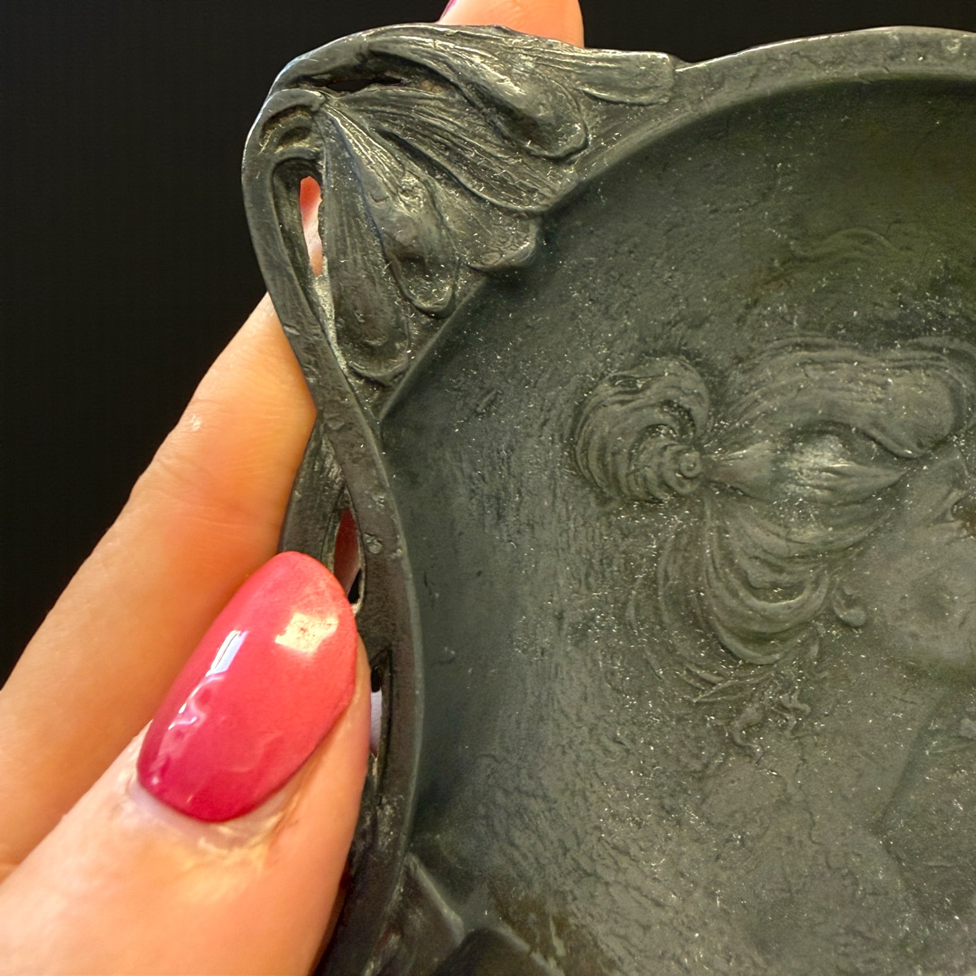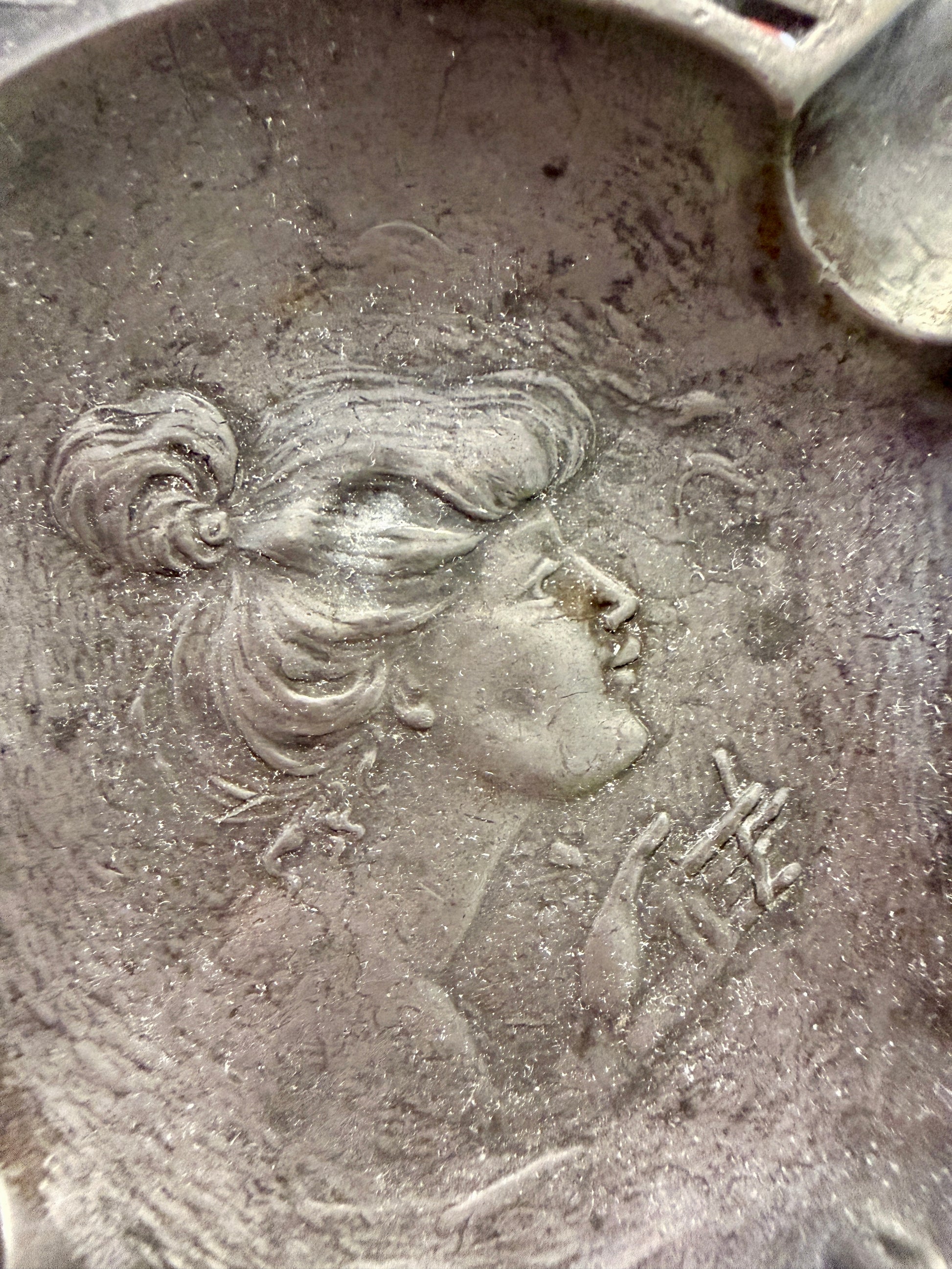 Posacenere Art Nouveau con ritratto di femme nouvelle alla Mucha, primi ‘900
