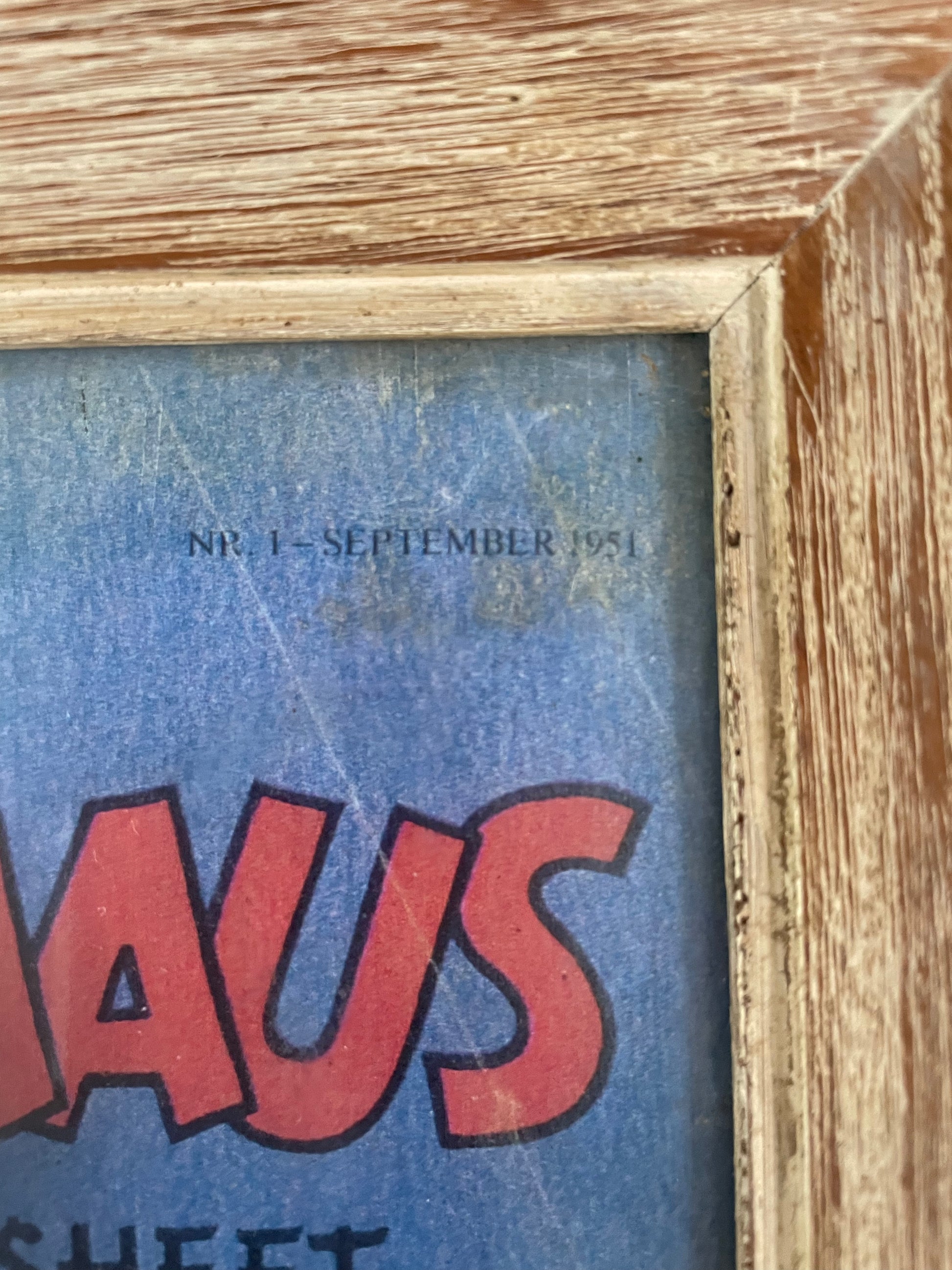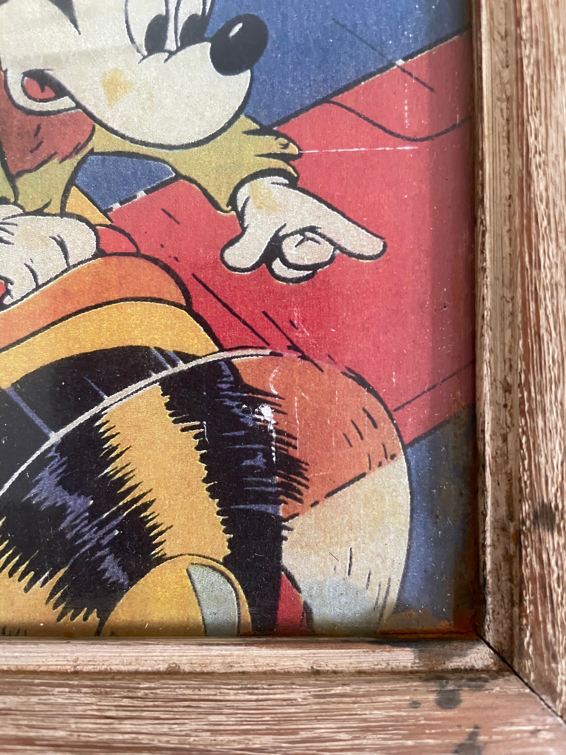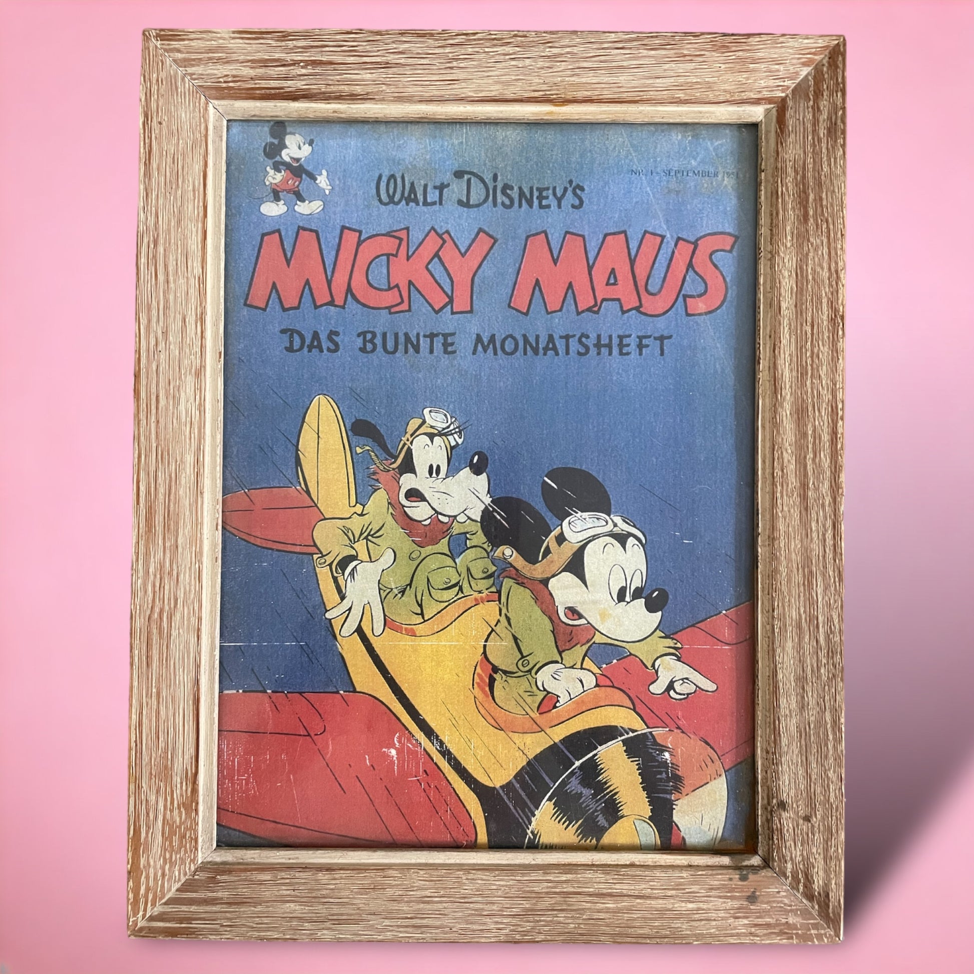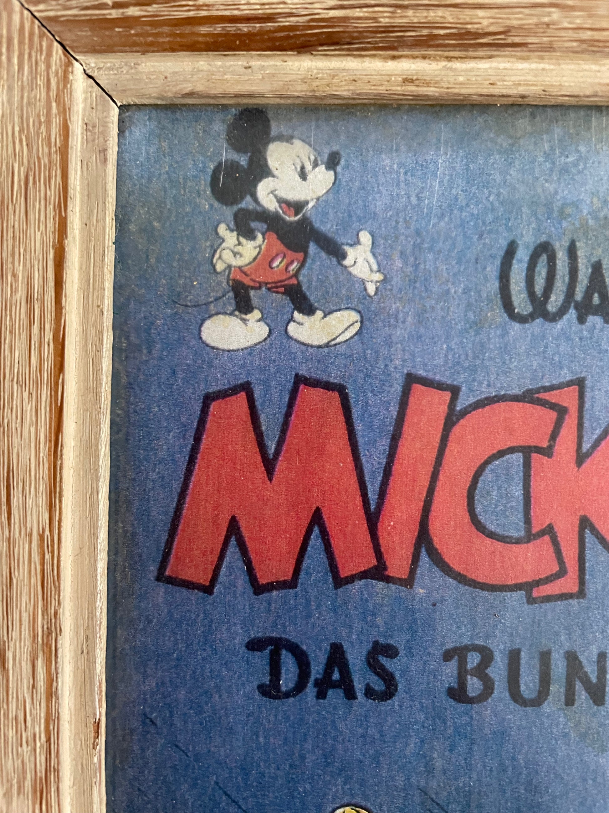 quadro #vintage #anni50 #mickymouse copertina album n. 1 del 1951; edizione tedesca, dimensioni cm 27 x 21, cornice coeva ritirata così, con a tergo una copertina cartonata delle fiabe dei fratelli Grimm.