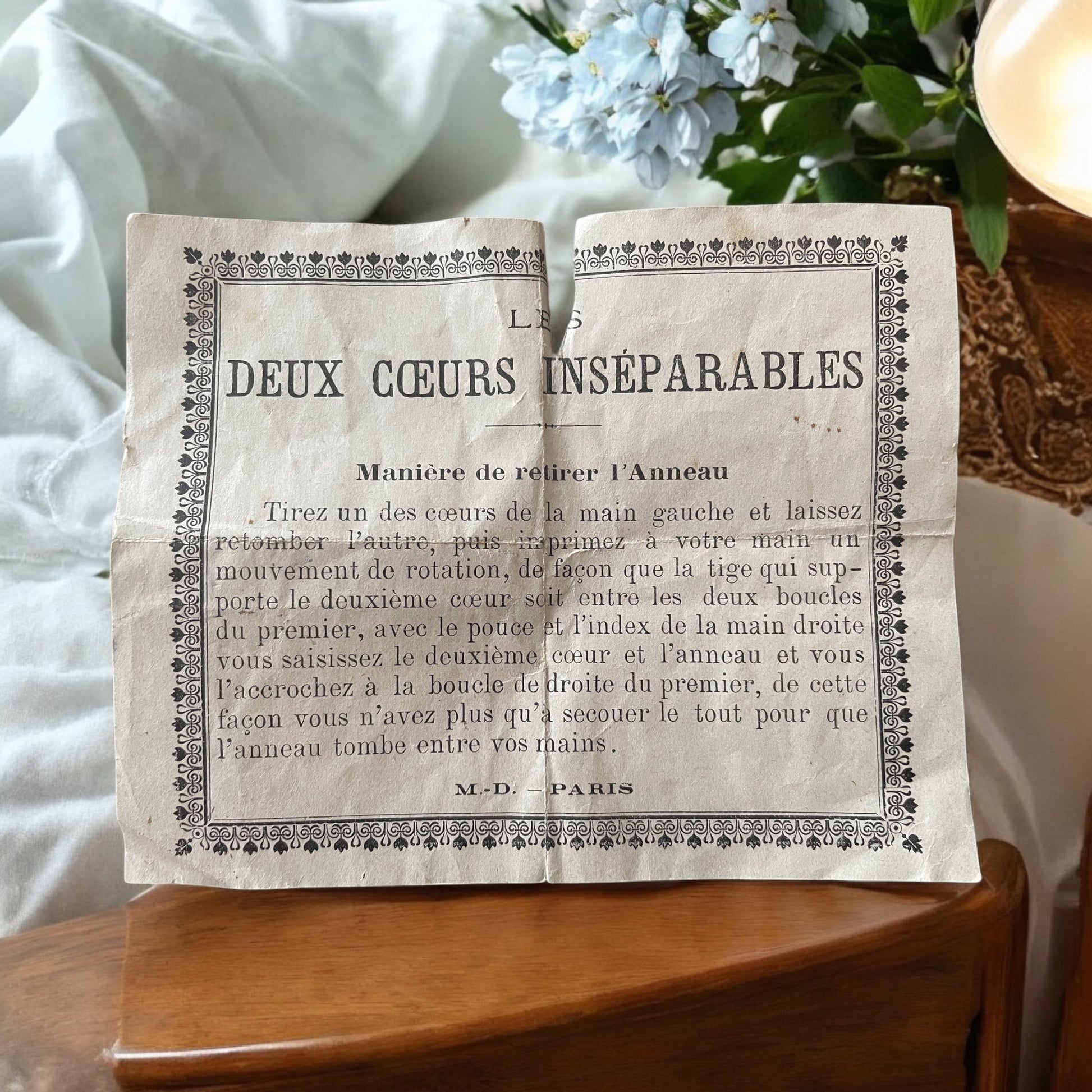 Rompicapo francese anni ‘20 con conf. Originale e istruzioni, “I cuori inseparabili”