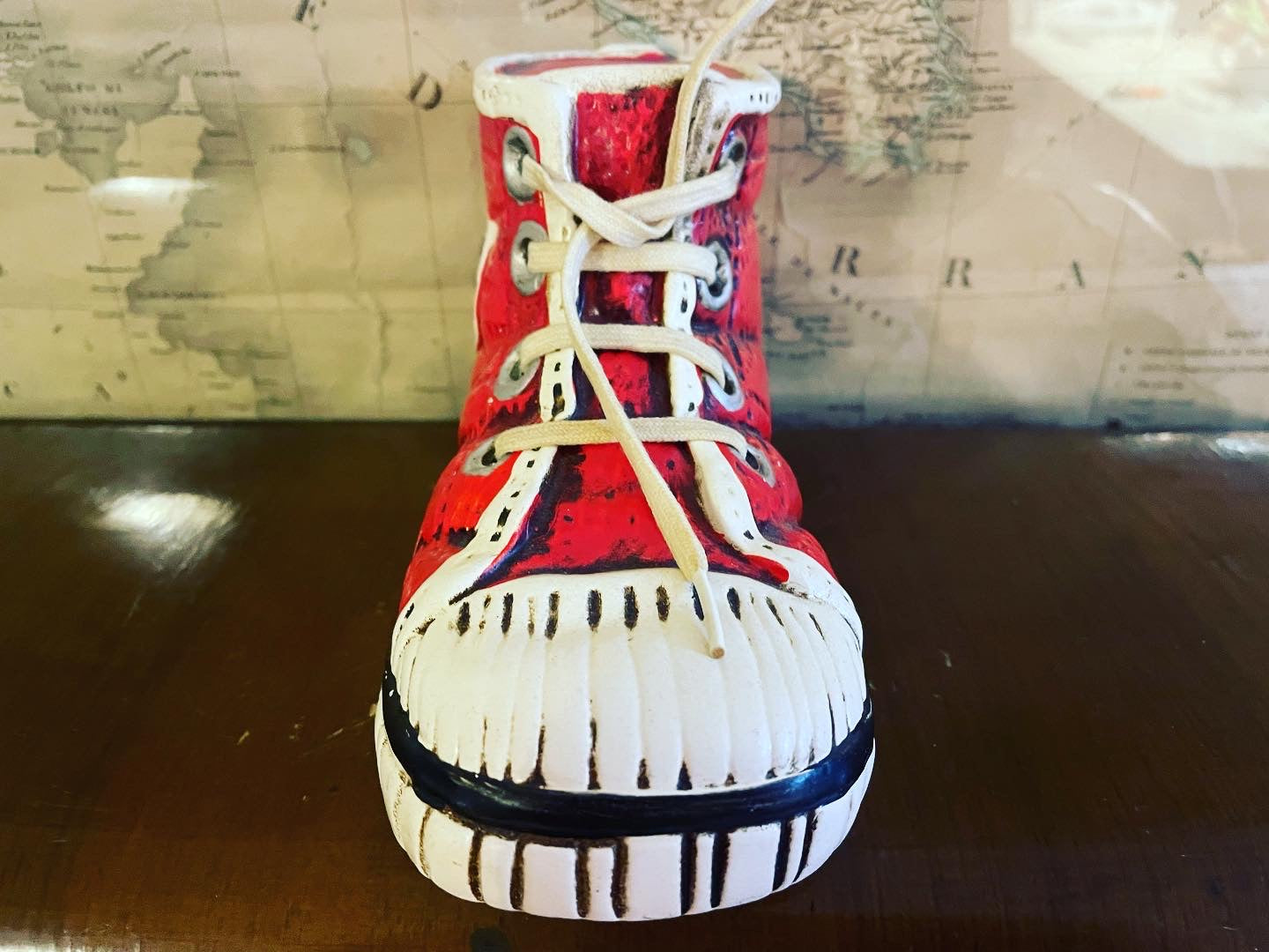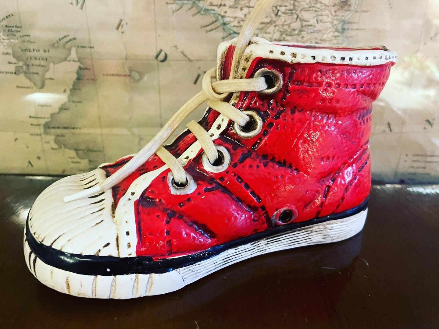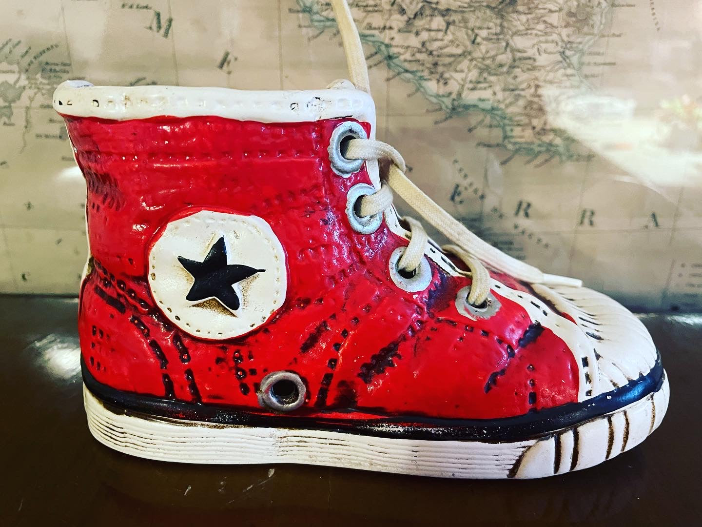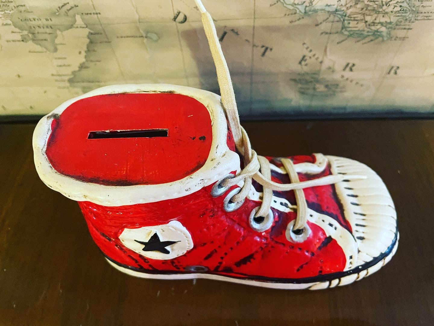Buon #sabatosera #anni80 ragazzi! #vecchio #salvadanaio a forma di #scarpa … le intramontabili #converse ! Sapete che le #allstars sono state inventate nel 1923? Questa #scarpettarossa ha 40 anni e li porta benissimo ❤️