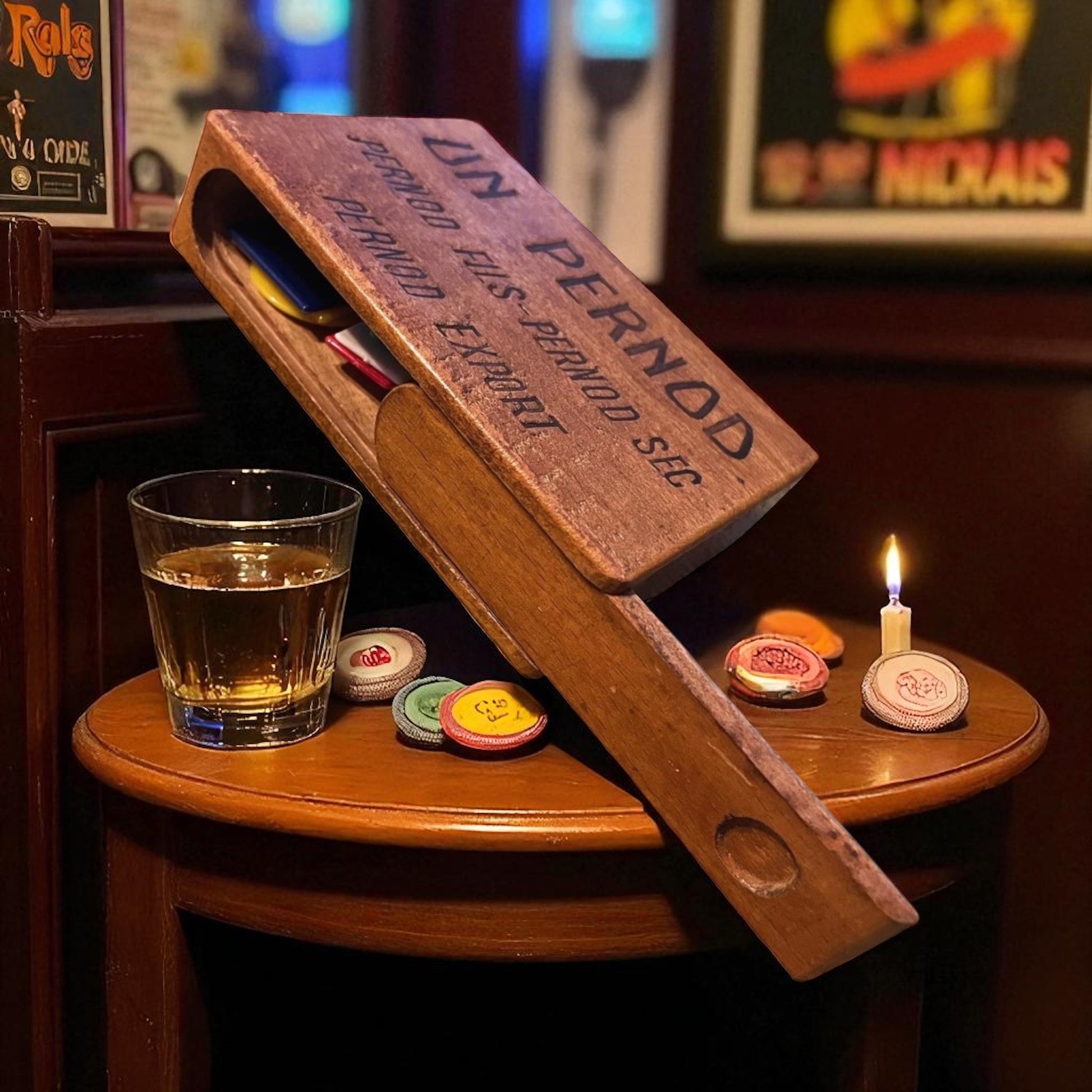 Scatola in legno originale Pernod, fine anni ‘40 completa di gettoni da gioco