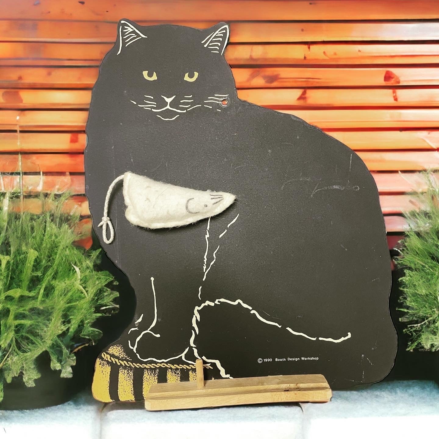miao !! La #lavagna #vintage a forma di #gatto del #1990 ; con il #vecchiocancellino a forma di #topino 🐱🐭 bellissima nonostante i suoi 33 anni! Un #vintage tenuto benissimo; legno, 40 x 33 cm, tenerissima e simpaticissima.