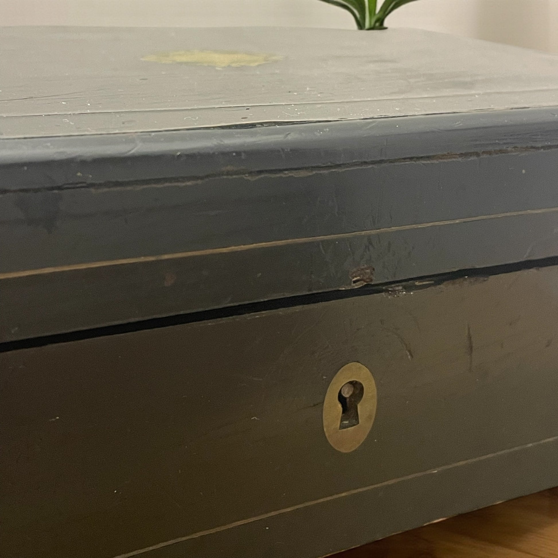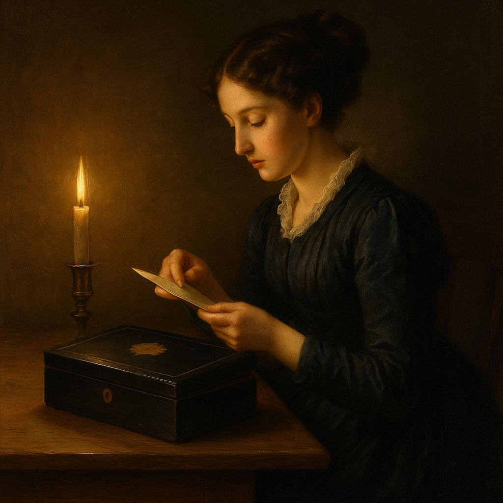 Si chiamava Élise Moreau, e amava scrivere al calar della sera, quando le strade di Parigi si facevano silenziose e il profumo dell’inchiostro sembrava un rifugio. Sul suo scrittoio, accanto a una candela tremolante, riposava questa scatola in legno chiaro ebanizzato, un piccolo scrigno di ricordi e lettere mai spedite. I bordi ancora rivestiti di carta rossa originale sembrano conservare il tocco delle sue dita, mentre il velluto rosso rifatto in epoca successiva racconta di mani diverse che hanno voluto salvarne la memoria. Il cartiglio in ottone, forse un tempo inciso con le sue iniziali, e la ferramenta coeva testimoniano un’eleganza che non ha bisogno di ostentarsi. Oggi, questo cofanetto non è solo un oggetto, ma un’eco di vita: una promessa di segreti, di cura e di bellezza senza tempo.