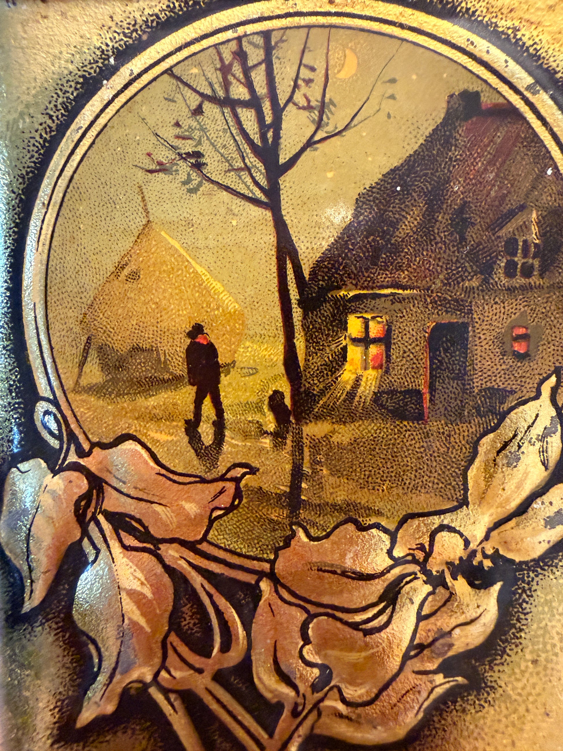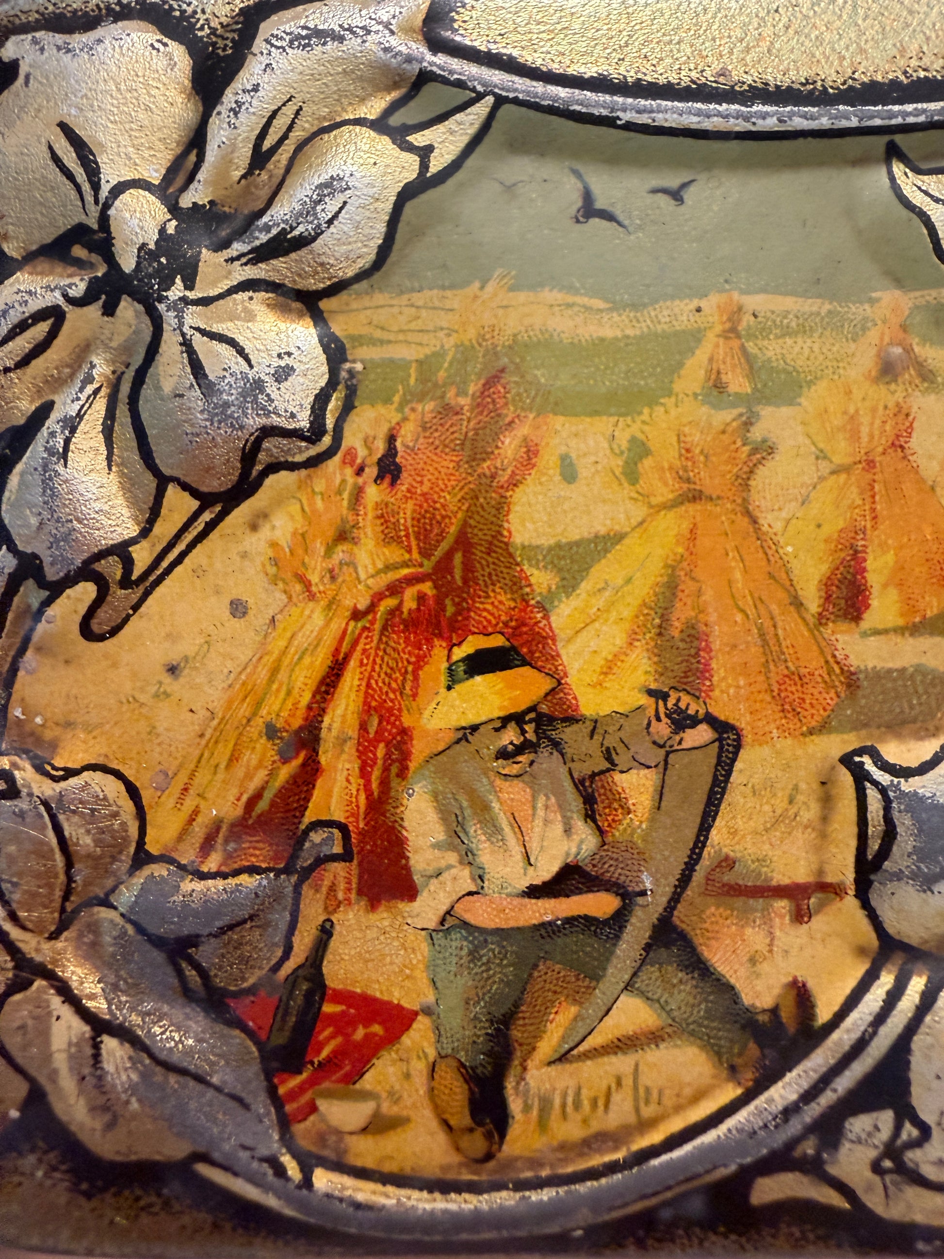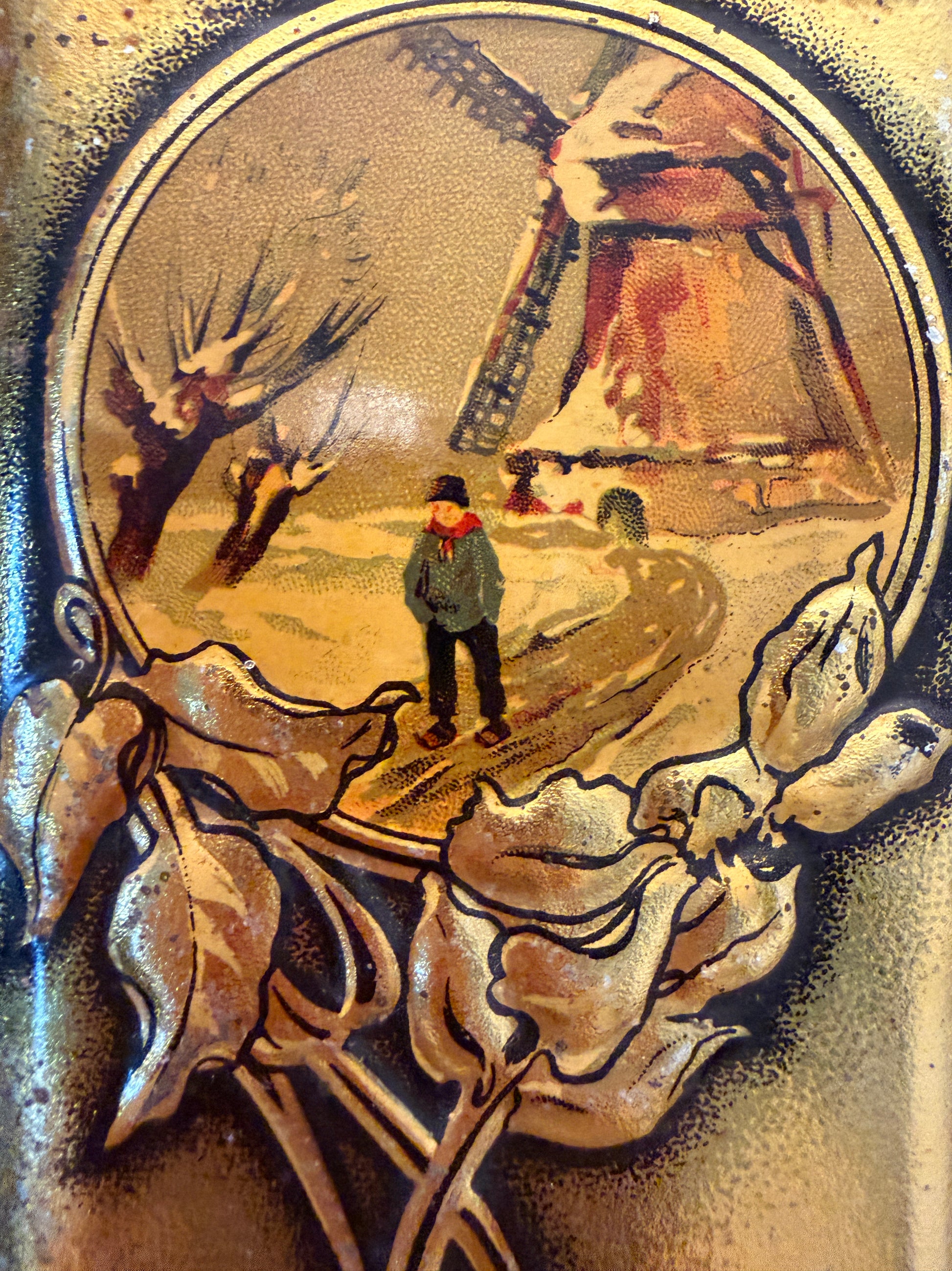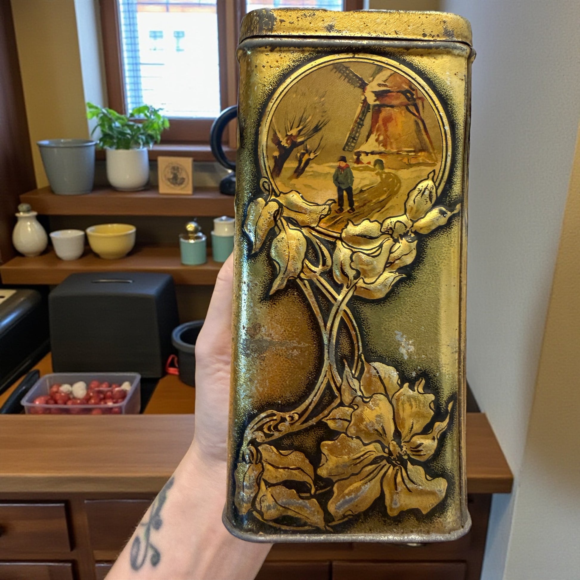 Queste tre scatole sono CAPOLAVORI DELL’ARTE ma non nascono per essere ammirate da lontano, bensì per essere aperte ogni giorno. Farina, cicoria, dolci: il cuore della cucina di fine Ottocento, raccontato attraverso il linguaggio sinuoso e floreale del Liberty. Qui l’Art Nouveau non resta su un piedistallo: scende, entra nelle case, si lascia toccare. Le linee morbide, i fiori, le figure femminili idealizzate convivono con la ripetizione del gesto quotidiano, con le mani che lavorano, impastano, misurano. È uno dei rari momenti in cui l’arte incontra davvero la vita - ed è un cortocircuito potentissimo! Le immagini sono rassicuranti, quasi lente: scene rurali, natura, nutrimento. Servivano a portare armonia in uno spazio che era anche fatica. Non oggetti di lusso allora, lo sono diventati oggi per il loro valore artistico ed iconografico. Al tempo erano oggetti pensati con cura, dove la bellezza si faceva presenza silenziosa nelle mani di cuoche e fantesche. Un set che racconta un’epoca in cui anche la cucina era un luogo attraversato dall’arte, e in cui il quotidiano non era escluso dalla poesia.