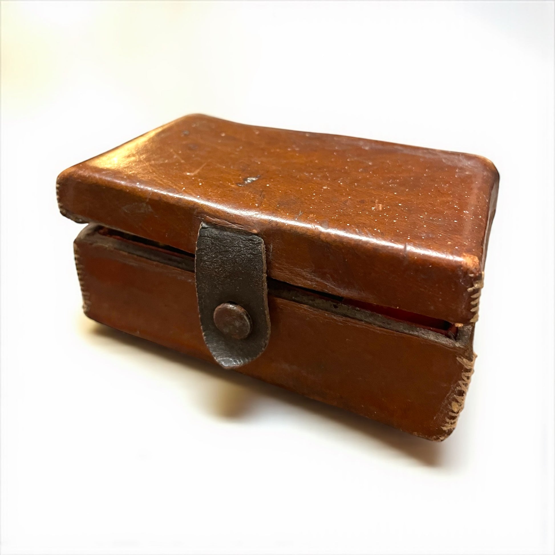 Set rasoio in ottone, porta lamette & lamette in custodia pelle anni ‘20 ca