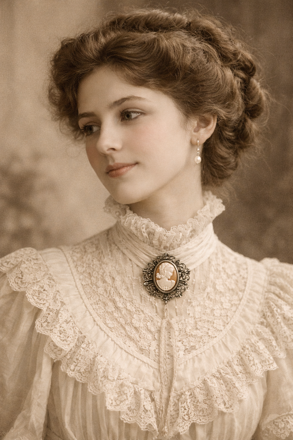 È proprio questo dialogo a renderla speciale: la densità del cammeo e la trasparenza della filigrana si cercano e si bilanciano, come se fossero nati per stare insieme. Indossarla non significa aggiungere un ornamento, ma scegliere un dettaglio che parla sottovoce, e che per questo resta.