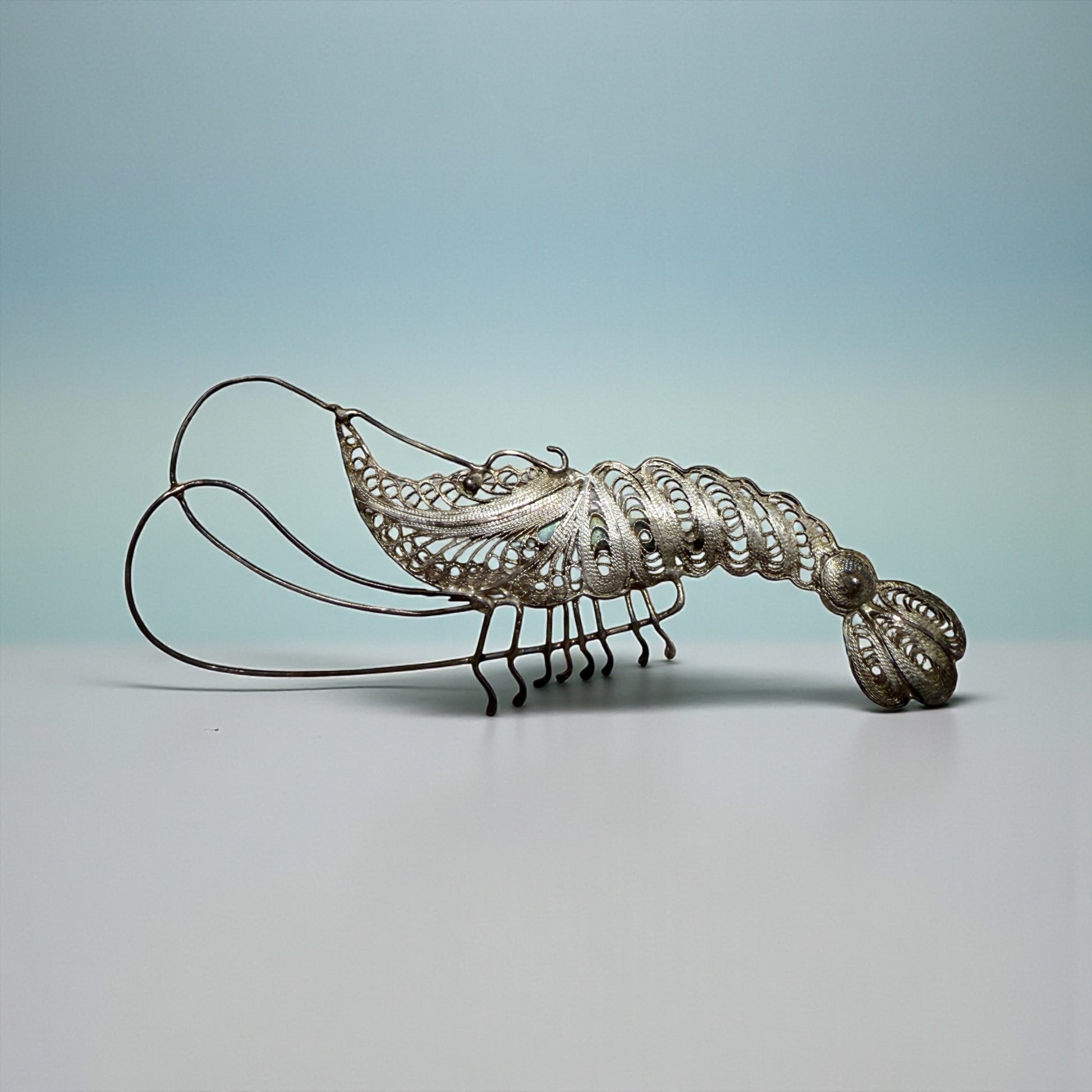 Spilla in filigrana d’argento a guisa di gambero, primi decenni ‘900