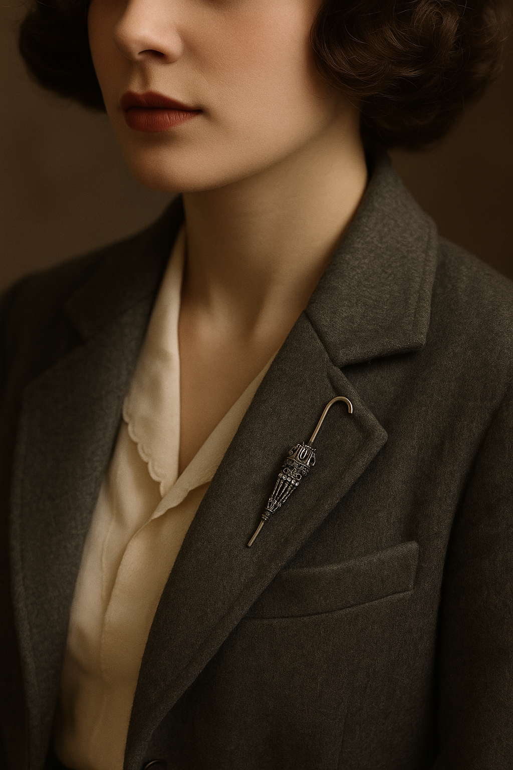 Spilla liberty in argento a guisa di ombrellino, primo ‘900