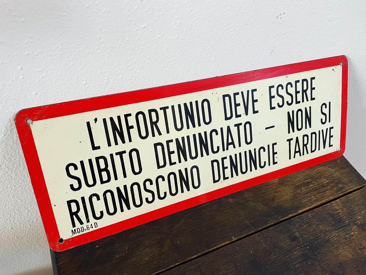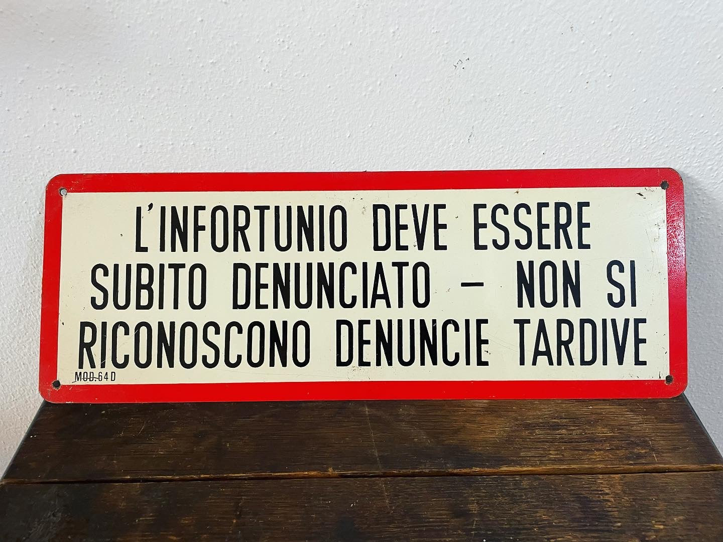 #vecchia #tabella regolamentare da #officina direttamente dagli #anni60 ! 36 x 13 cm in ferro, l’infortunio deve essere subito denunciato 👩🏻✈️🦺 perfetta per #garagestyle e #arredoindustriale , originale, no replica