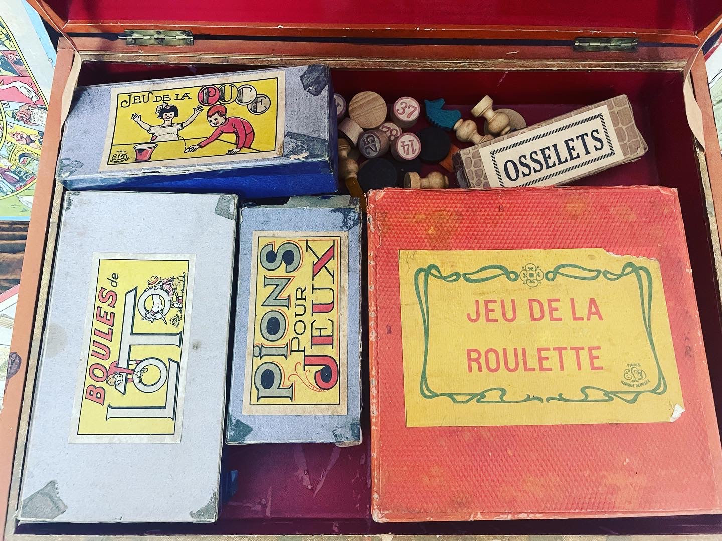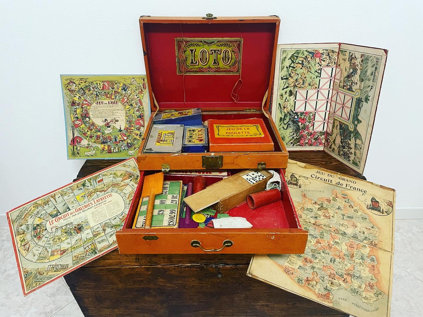 Ragazzi una #collezione unica davvero stasera, di cui sono super fiera. Tenuta ottimamente e risalente ai primissimi del #novecento ; questa #anticavaligia dei #giochi ha fatto la felicità di un bambino parigino nel 1906-1907. La #valigiadeigiochi contiene tantissimi diversi #antichigiochi tra cui alcuni assai popolari come l’antico #giocodelloca o l’antico #domino ed altri più caratteristici e super #liberty come … il gran tour della Galleria Lafayette dove erano nati i primi Grandi Magazzini!! In totale ci sono circa 15 giochi. Esposta fa a dir poco un figurone, è cesellata e decorata sulla parte superiore e completa di manici da viaggio. Grandi dimensioni, chiusa misura cm 40 x 30. Una vera #chicca .
