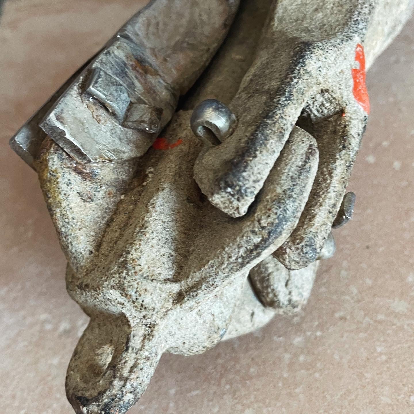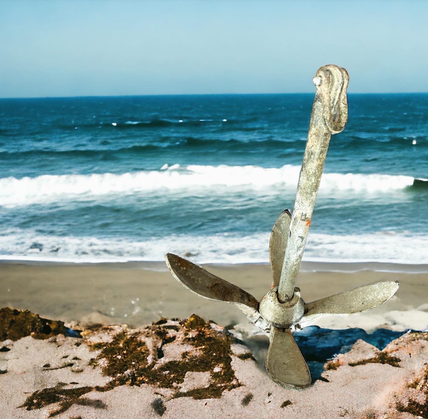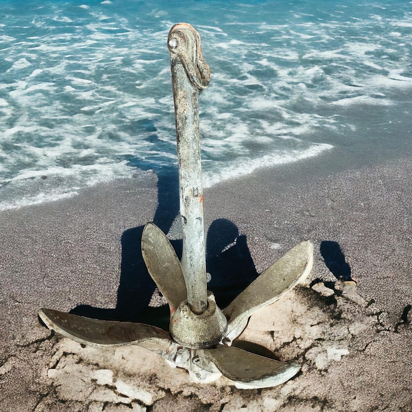 fa ancora freddo ma stiamo già pensando all’estate … con questa vecchia àncora di una piccola barchetta in legno di pescatori, dismessa, in zona trabucchi. E si chiude si apre e può essere appesa aperta o poggiata a terra per ottenere un arredo a tema marino veramente d’impatto, insieme ad una vecchia rete da pesca per esempio. È alta 37 cm.