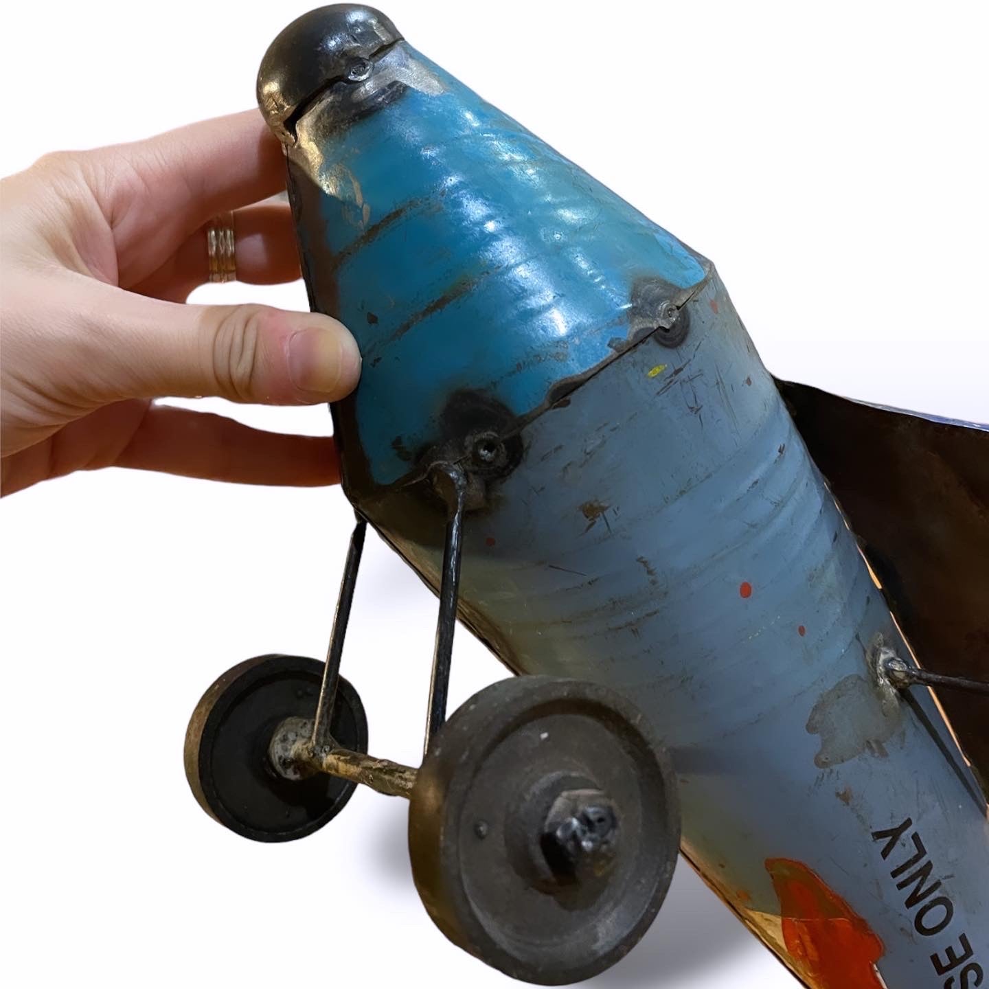 Ragazzi È GRANDE GRANDE GRANDE! 60 x 60 cm il nostro #aereo #vintage in #lamiera di ferro #antica #industriale ; fatto a mano, le ruote anteriori sono vecchie la posteriore è stata cambiata. Stupendo pezzo #industrialstyle che non vede l’ora di catturare tutta l’attenzione dei vostri clienti! Dal vivo è 36483 volte più bello, e poi è davvero un #pezzounico.