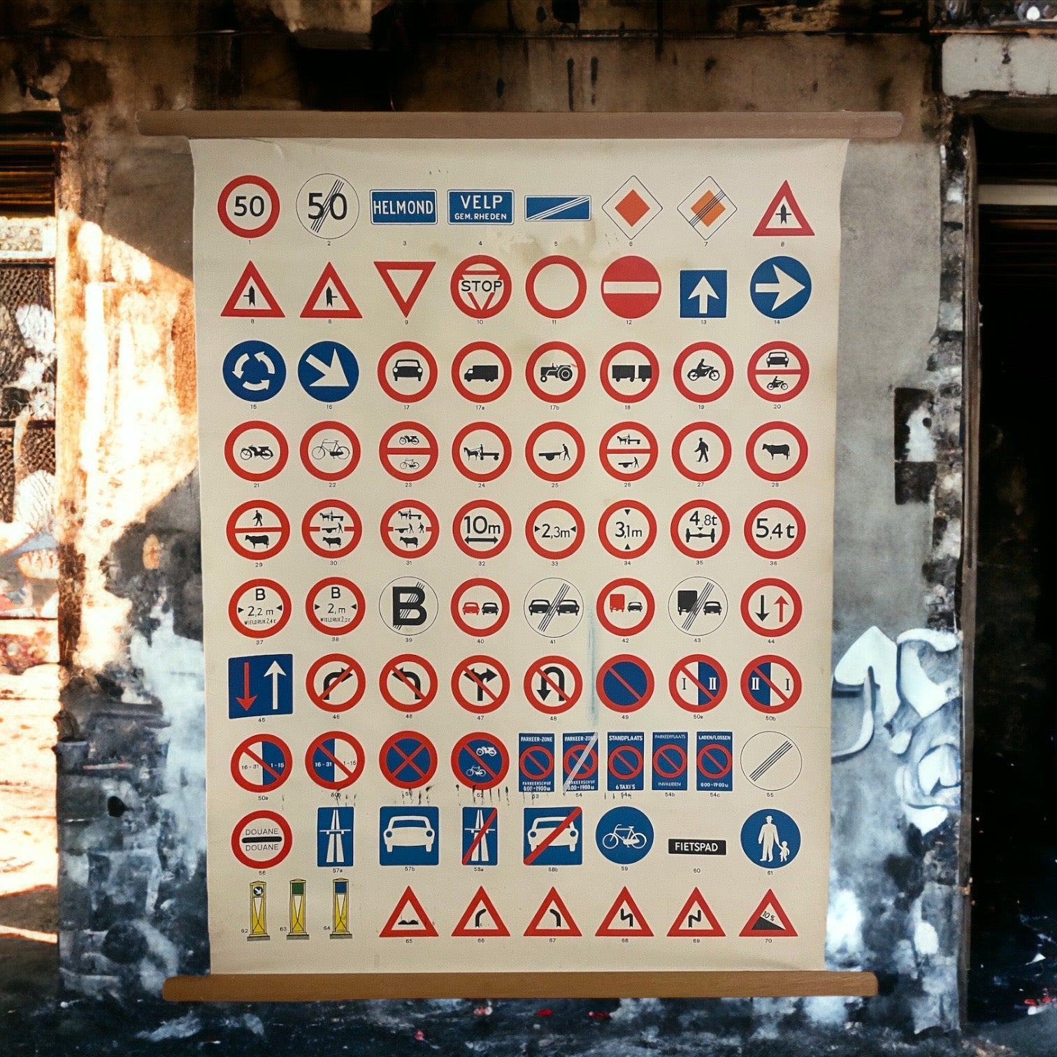 Bellissimo pezzo #industrial stasera!! #manifesto #originale #vintage proveniente da un #scuolaguida olandese, telato, con bacchette, grandi dimensioni e fortissimo impatto visivo. Cm 96 x 78, qualche segno del tempo, ideale #arredoloft e #garagestyle !!