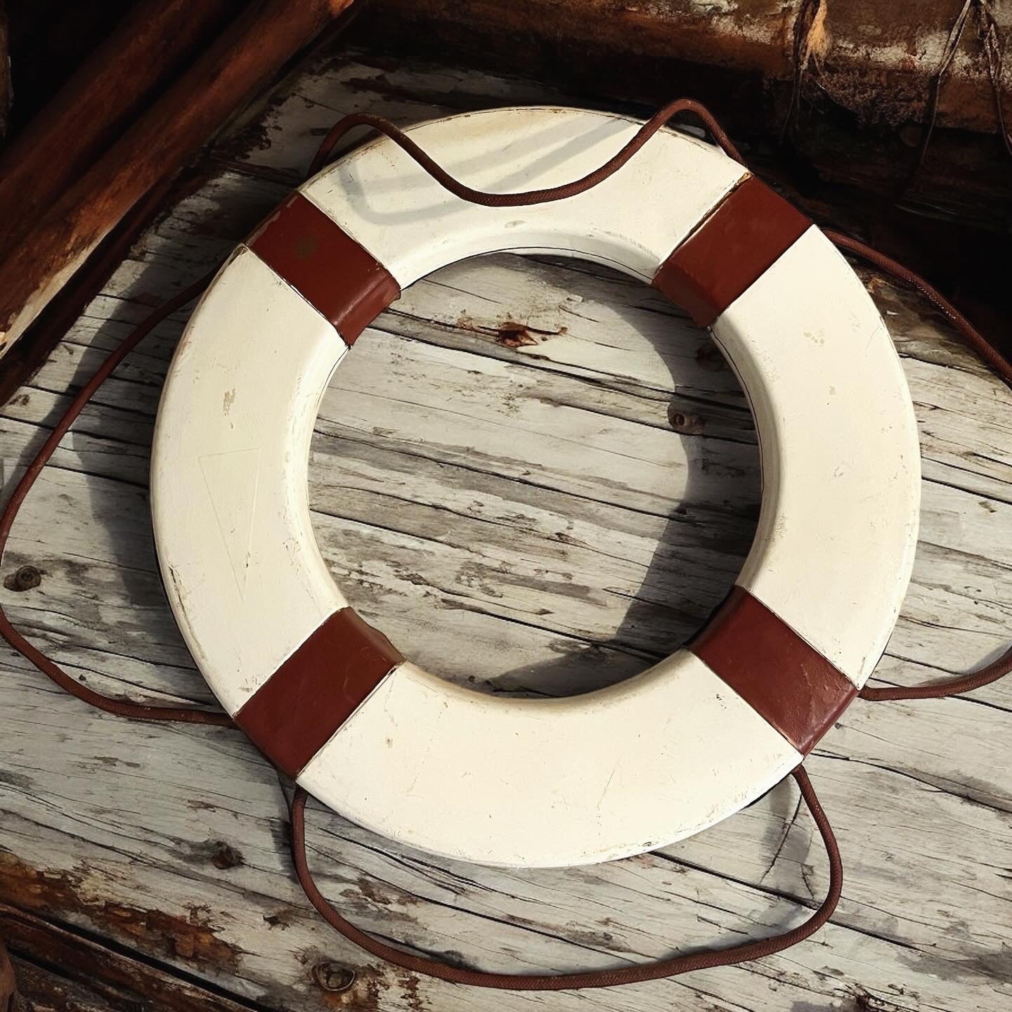Ecco cosa abbiamo recuperato per lui da un vecchio battello che faceva tratte turistiche fluviali: un bellissimo salvagente decorativo d’epoca, in legno e corda, con una splendida patina del tempo e dimensioni decisamente generose - il diametro misura ben 78 cm. Si tratta di un oggetto vecchio, autenticamente brocante, niente a che vedere con certe riproduzioni contemporanee cinesi……. 👀👀 Renderà splendido un alloggio marittimo, una vetrina a tema estivo.