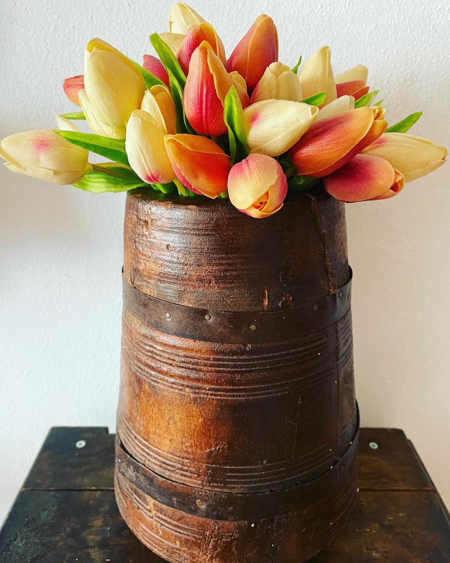 Questa meravigliosa #antica #zangola per #fareilburro pesa ben 4 CHILI!! da rivisitare come #vasodafiori è perfetta.