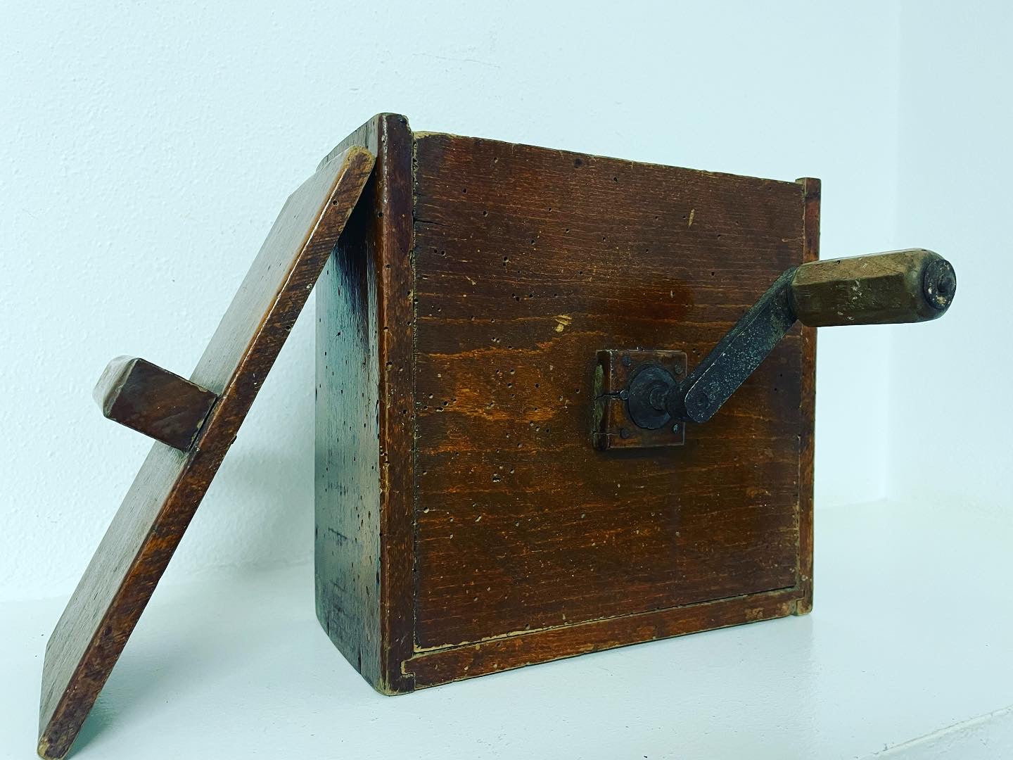buonasera di venerdì con questa #antica #zangola a manovella che conserva ancora la parte girevole interna ed il coperchio🥰 dimensioni 26 x 23 cm; bellissima da esposizione . #fareilburro era faticoso… esporre questo bellissimo oggetto in un contesto ricettivo o di ristorazione #rusticochic incuriosirà tutti.
